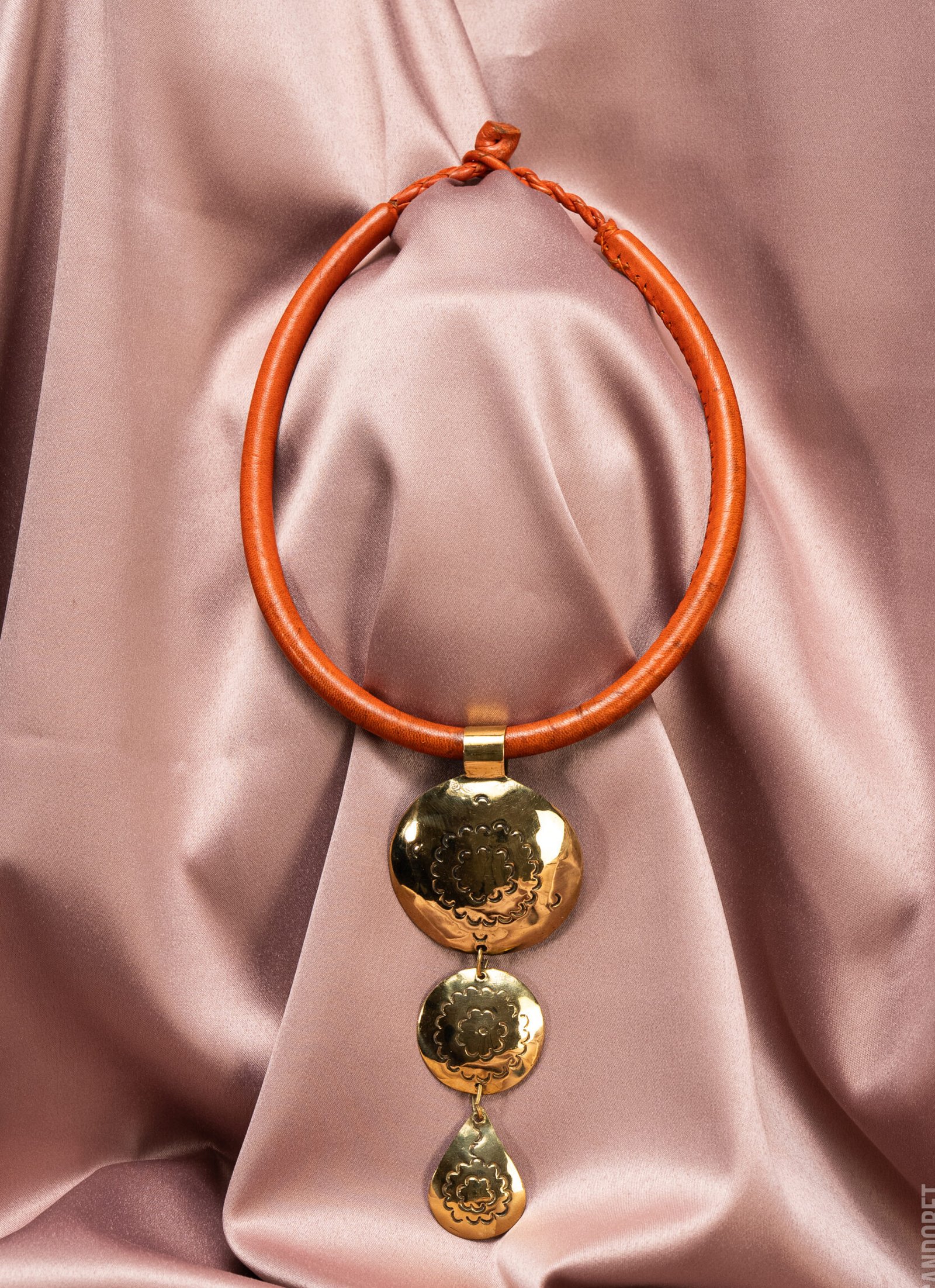 Audace et caractère en un seul bijou : cuir, bronze, pendentif imposant.